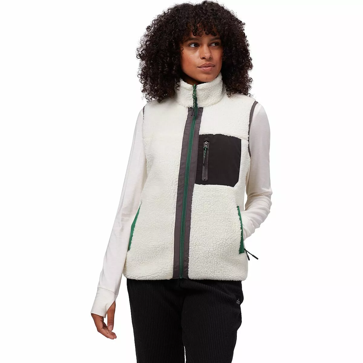 Wear the Reversible Mixed Media Sherpa Vest with a pop of color from a single chest pocket or flip it and reverse it to feature a minimalist design. This vest is for chilly fall days and walks in the park, but we also like to toss it on post-pilates when we opt to grab dinner on the go. A full Sherpa fleece construction keeps us warm and comfortable so we feel like we’re wrapped in our warmest blanket — a must for late fall in the mountain west.